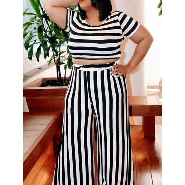Lovelywholesale Plus Size Crop Top Striped Pants Set Walmart Com